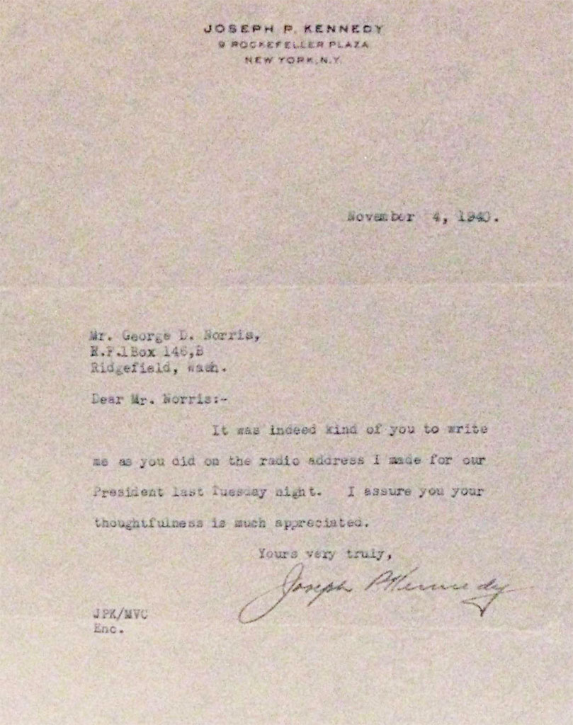 on Rockefeller Plaza stationary dated 1940, re: radio address he made on President Roosevelt.