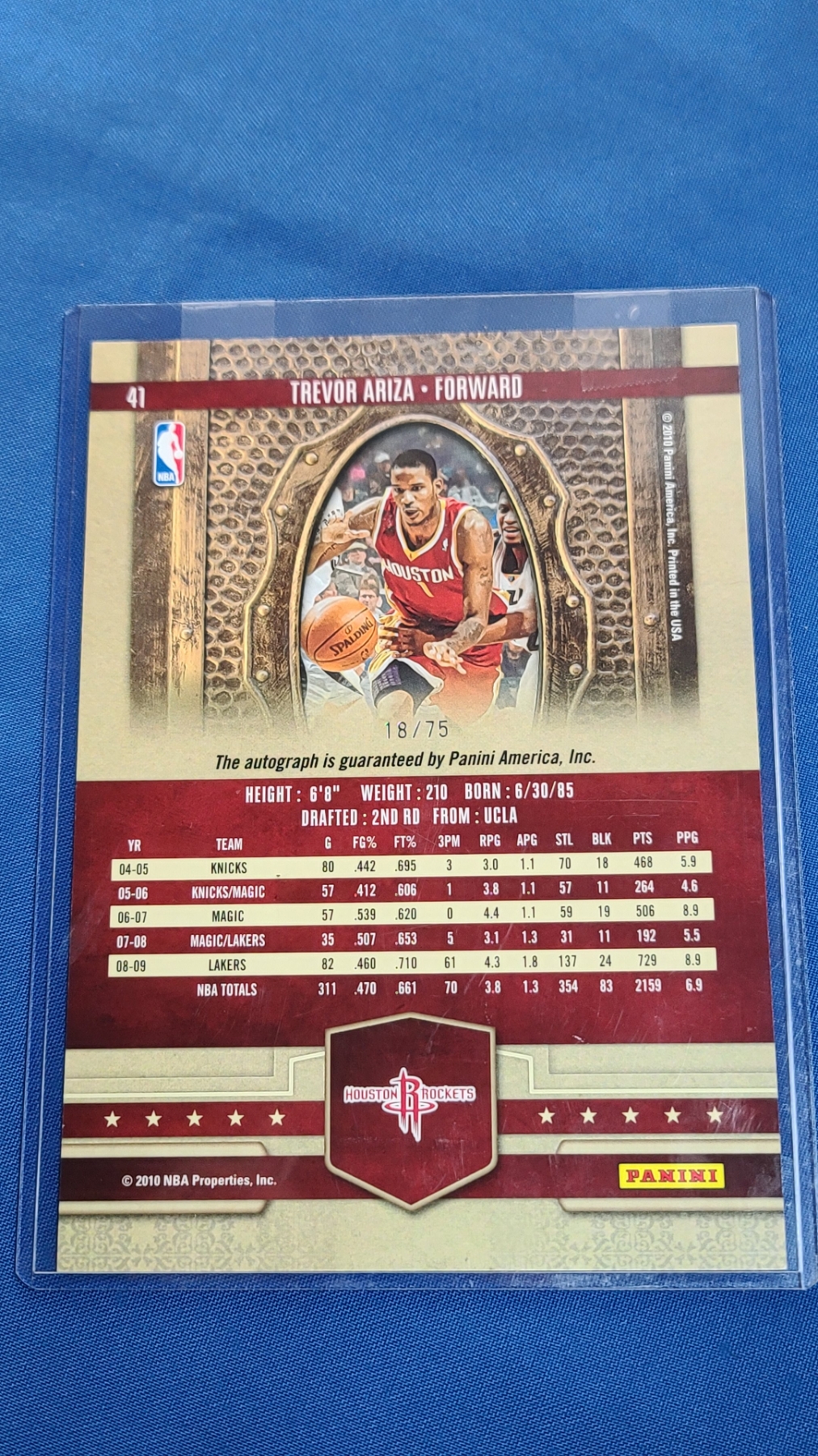 Autographed 2009-10 Panini Court Kings Trevor Ariza #41 Rockets 18/75 Box Topper Oversized 5x7 Card
