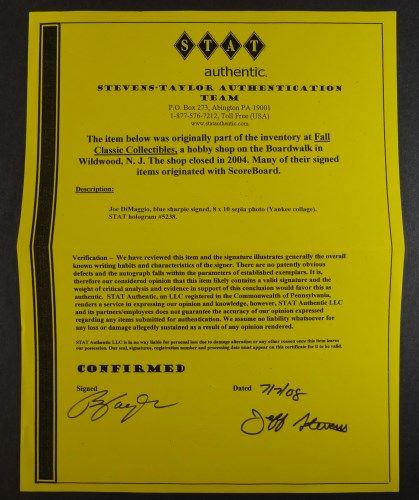 WE BELIEVE ALL ITEMS BEING SOLD ARE ORIGINAL AND AUTHENTIC. WE HAVE KEPT ANY COA'S WITH THEIR ORIGINAL ITEMS AND BELIEVE THEM TO BE REAL. NO ONE CAN GUARANTEE THE AUTHENTICITY OF ANY AUTOGRAPH. ALL LOTS ARE SOLD AS IS.