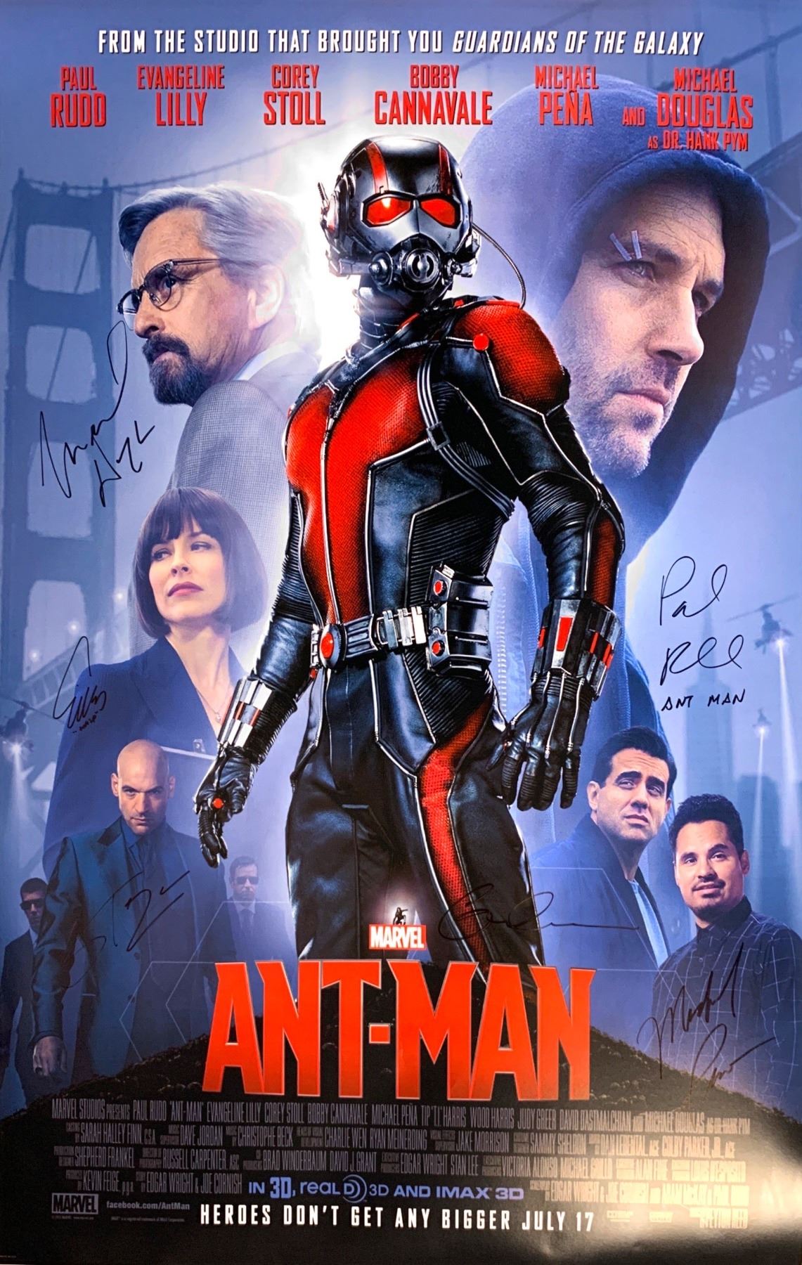 Autographed: Paul Rudd, Michael Douglas, Evangeline Lilly, Michael Peña, Bobby Cannavale, Corey Stoll