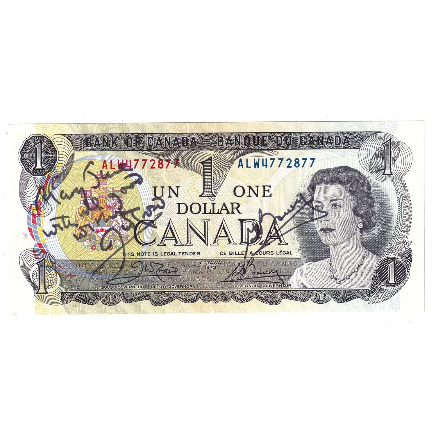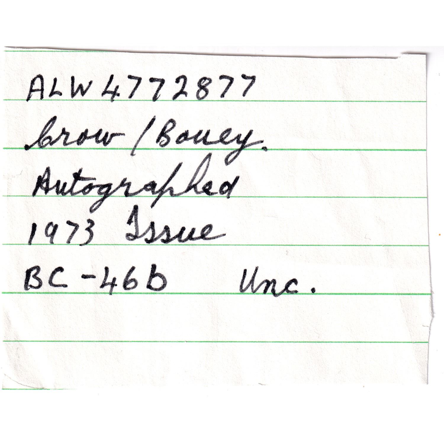 *Autographed!* BC-46b 1973 $1 UNC Crow-Bouey SN: ALW4772887. Signed: "Mary Jane with all good wishes J. Crow"