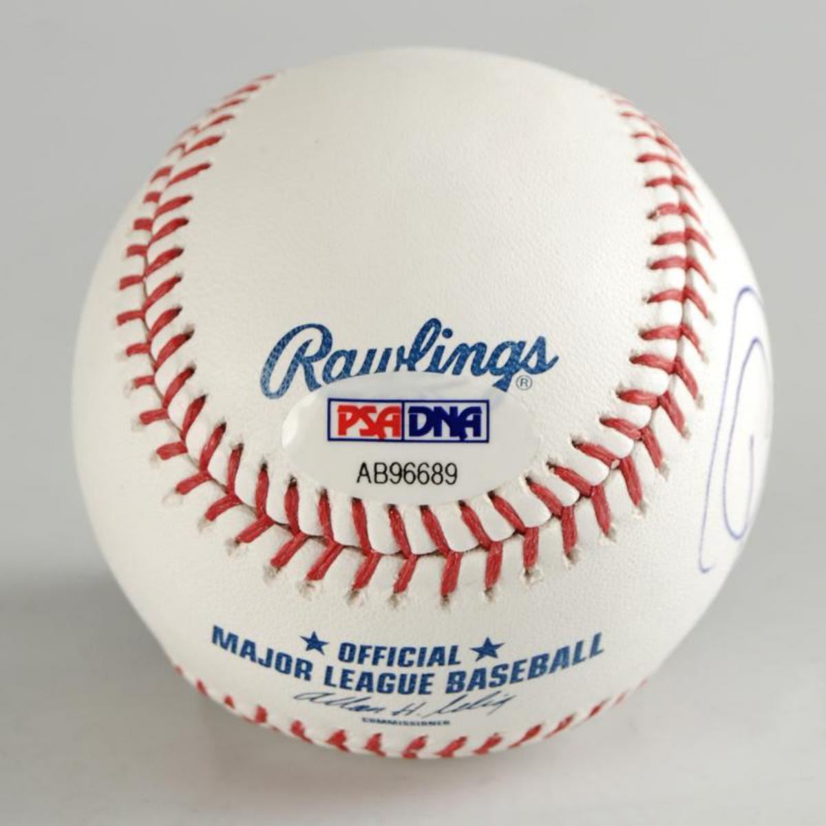 This is an autographed baseball by legendary Brazilian footballer, Pele! This piece is presented with a Certificate of Authenticity from PSA/DNA, which authenticates sports memorabilia using proprietary permanent invisible ink as well as a strand of synthetic DNA. We make no additional warranties. Measures approx. 3" x 3" (diameter). Reference #: 218807.