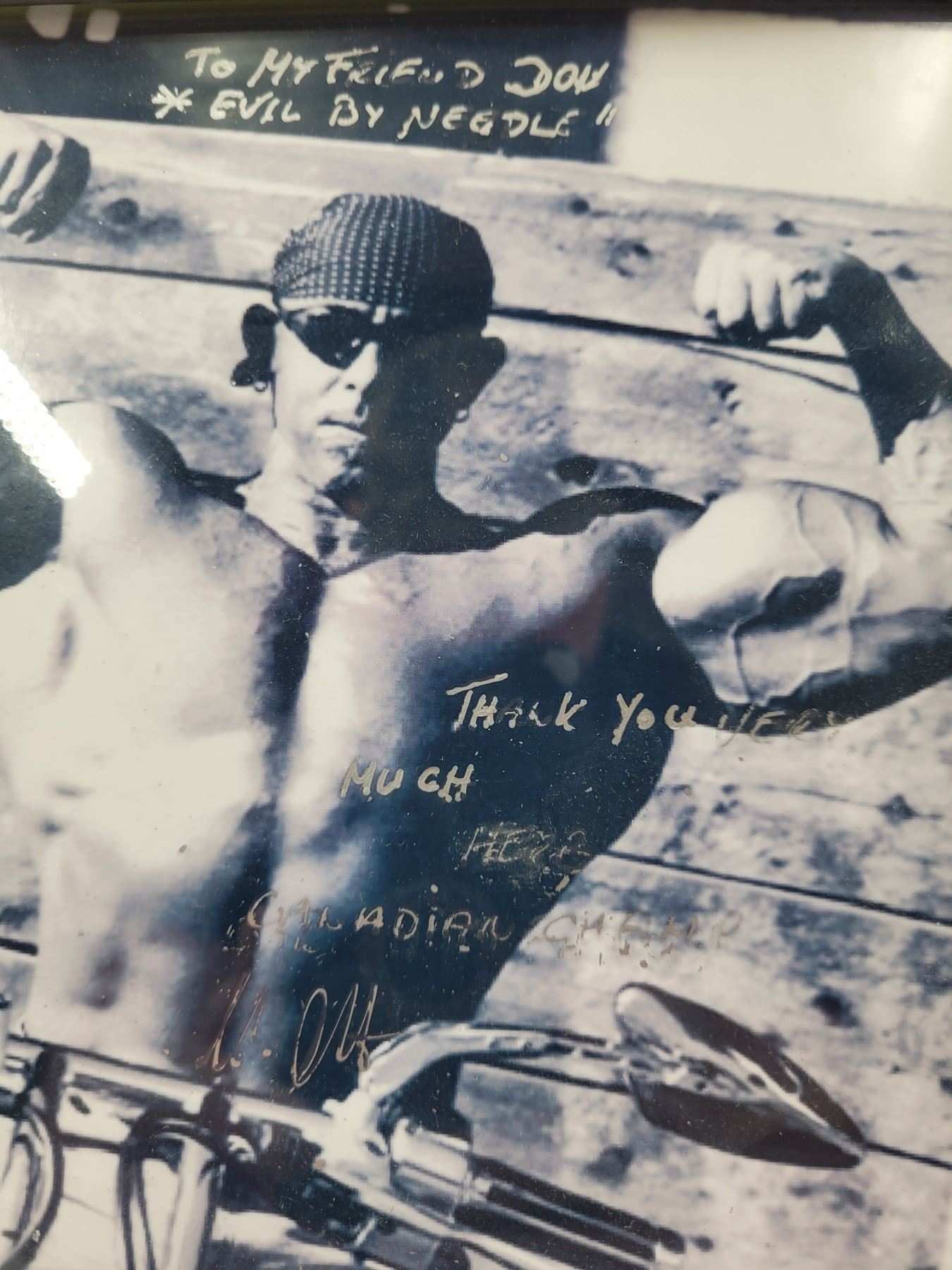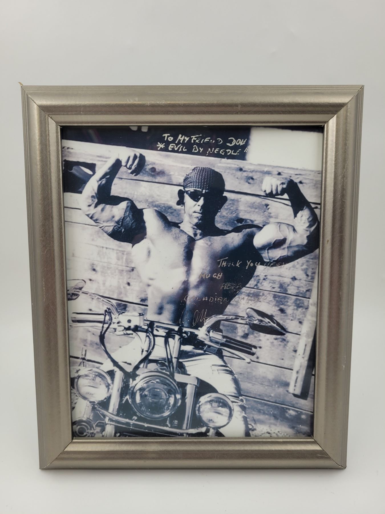 Autographed Bodybuilder on Motorcycle Print