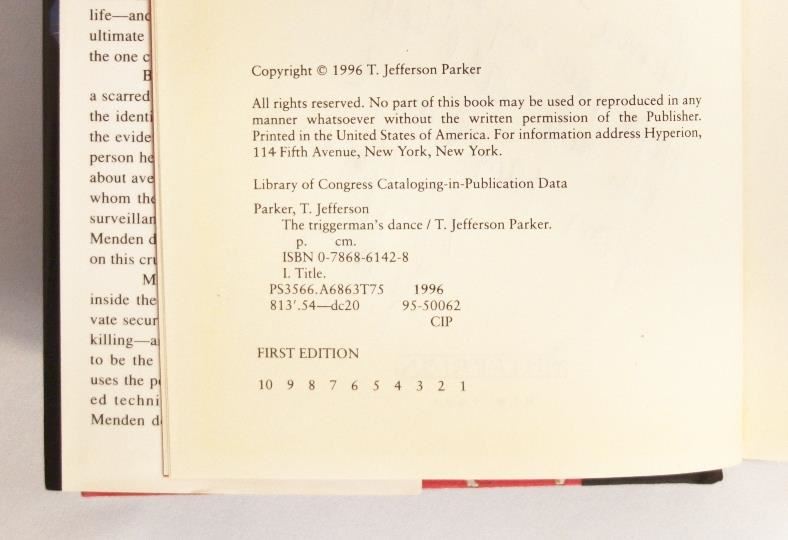 This copy of "The Triggerman's Dance" is autographed by the author, T. Jefferson Parker.