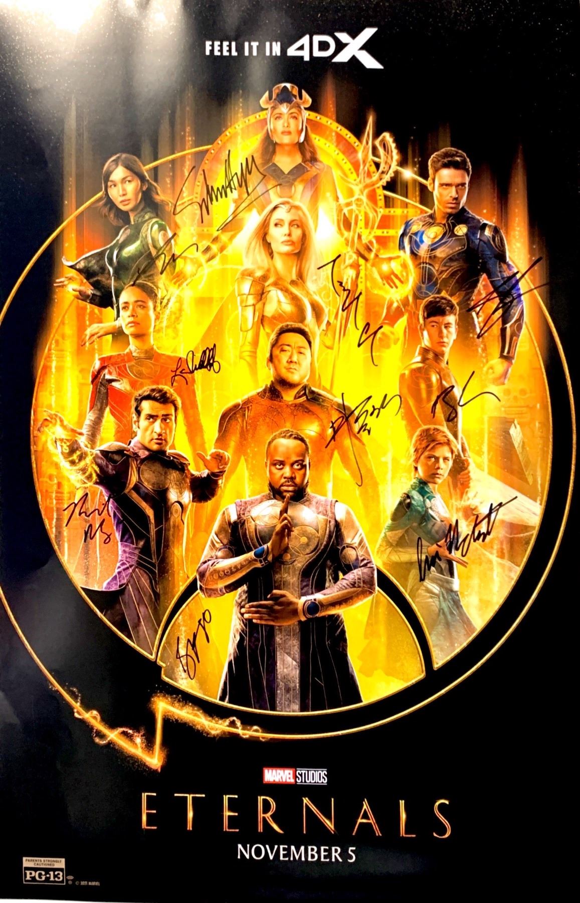 Autographed: Salma Hayek, Angelina Jolie, Richard Madden, Gemma Chan, Ma Dong-seok, Brian Tyree Henry, Kumail Nanjiani, Lauren Ridloff, Barry Keoghan, and Lia McHugh