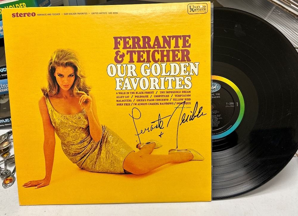 The album cover is autographed. It exhibits visible shelf wear, with some rubbing on the edges and corners. The vinyl appears to be in good condition.