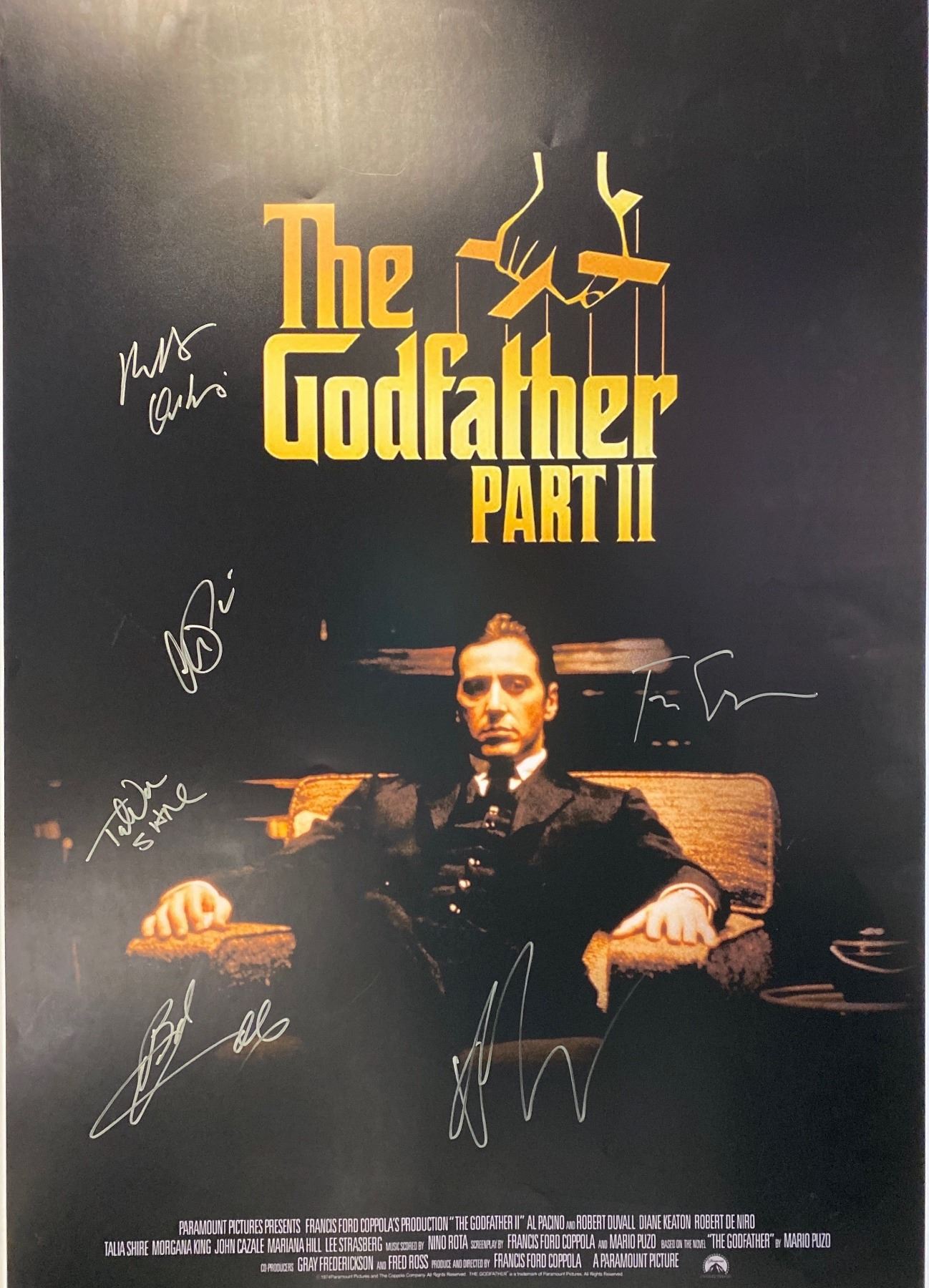 Autographed By: Francis Ford Coppola, Robert De Niro, Robert Duvall, Diane Keaton, Al Pacino, Talia Shire