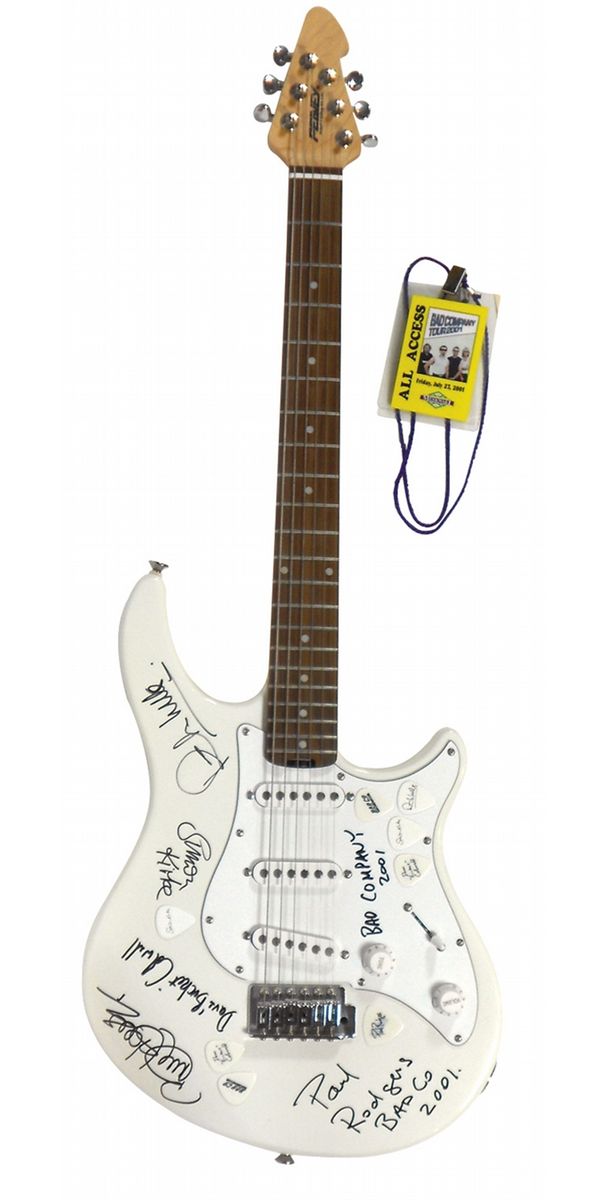 Autographed Guitar, Bad Co., signed by Paul Rodgers, Dave "Bucket" Colwell, Simon Kirke, Rick Willis