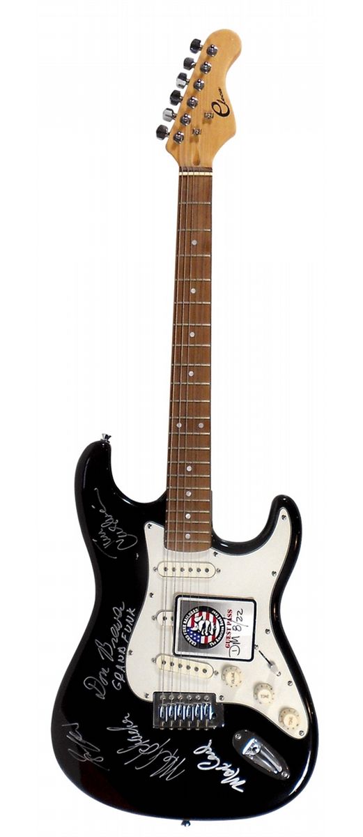Autographed Guitar, Grand Funk Railroad, signed by Don Brewer, Tim Cashion, Mel Schacher, Max Carl,