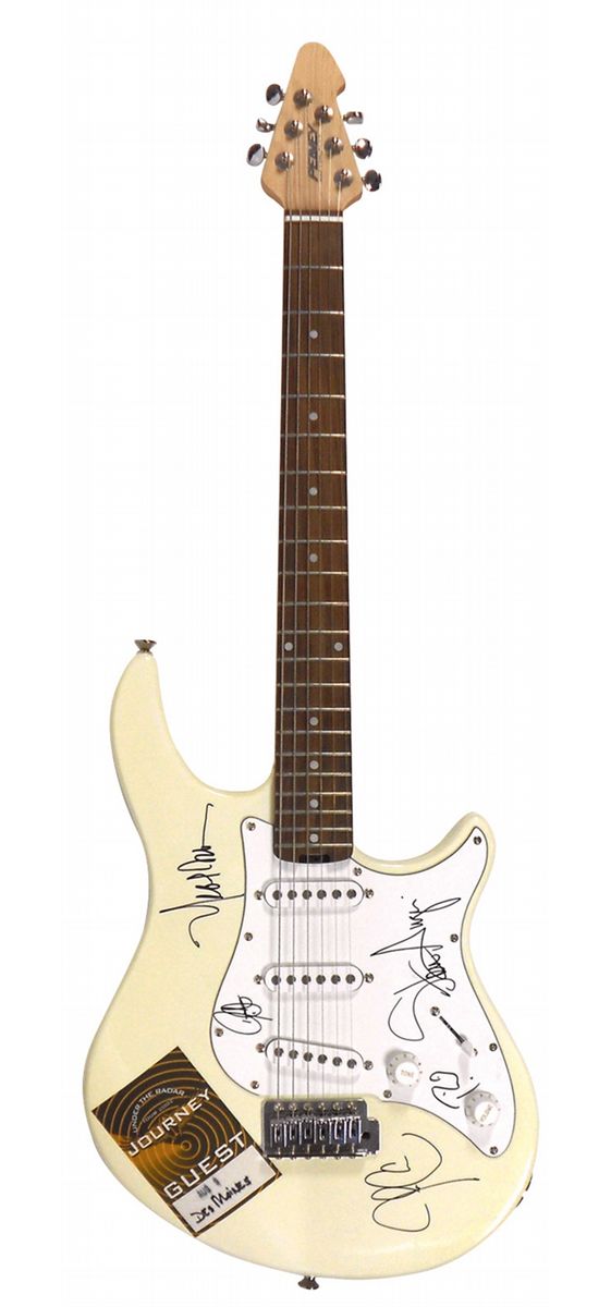 Autographed Guitar, Journey, signed by Steve Augeri, Ross Valory, Jonathan Cain, Neal Schon & Deen C