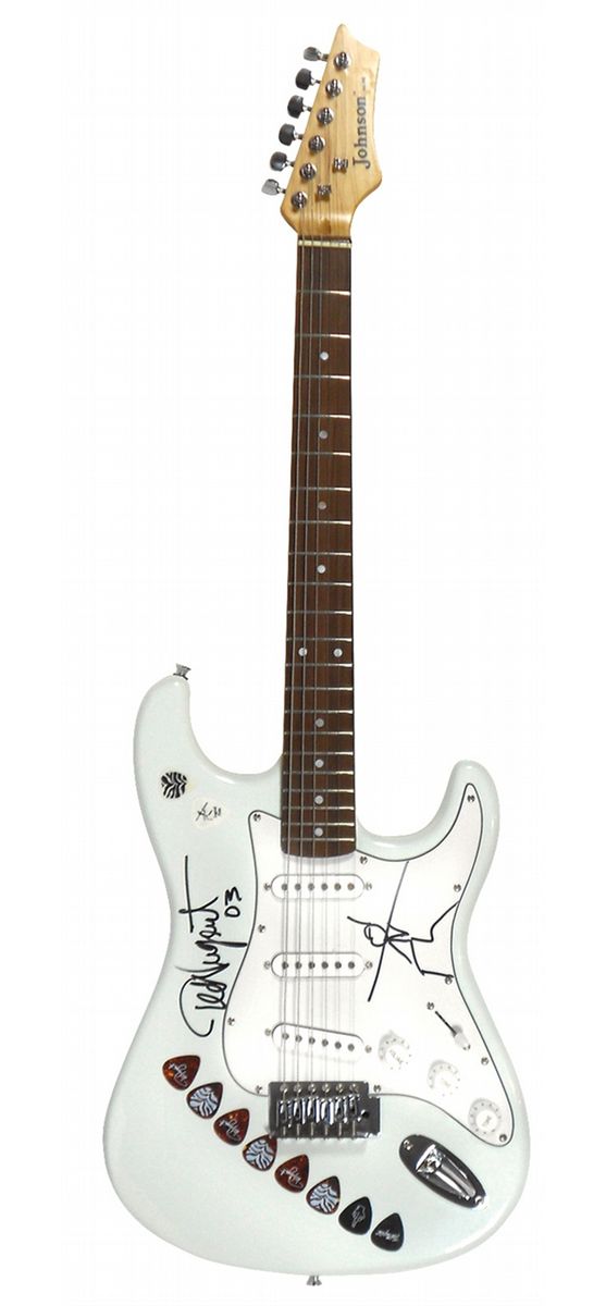 Autographed Guitar, signed by Ted Nugent & inscribed w/stick figure drawing on AXL Johnson w/10 picks, signature obtained in person 2003 by Steve Pilchen, Exc cond, 39"L.