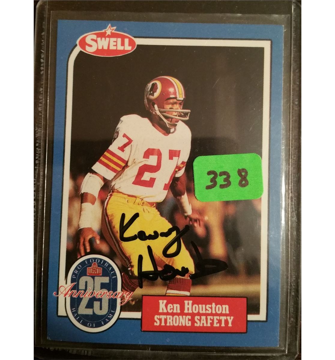 This card of Hall of Famer Ken Houston is signed in Black Sharpee on the front of the card. This Autograph was obtained in person, so there is no COA.