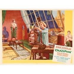 A group of 8 lobby cards autographed by various stars including: Kirk Douglas on Champion, Kirk Douglas on Lonely Are the Brave, Fred Astaire on That's Entertainment Part 2, Fred Astaire on The Belle of New York, Fred MacMurray on Woman's World, Fred MacMurray on Kisses for my President and 2 copies of Eddie Albert on The Fuller Brush Girl both signed. All lobby cards signed in ink and some personalized to John Ainsworth. Condition varies but generally B.