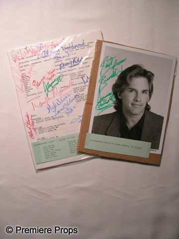 Lot of 2 great soap opera pieces, including an original cast signed script for the soap "Loving" which includes 14 key autographs. Also included in this lot is an autographed photo of James Carroll. Proceeds to benefit This Close for Cancer Research.