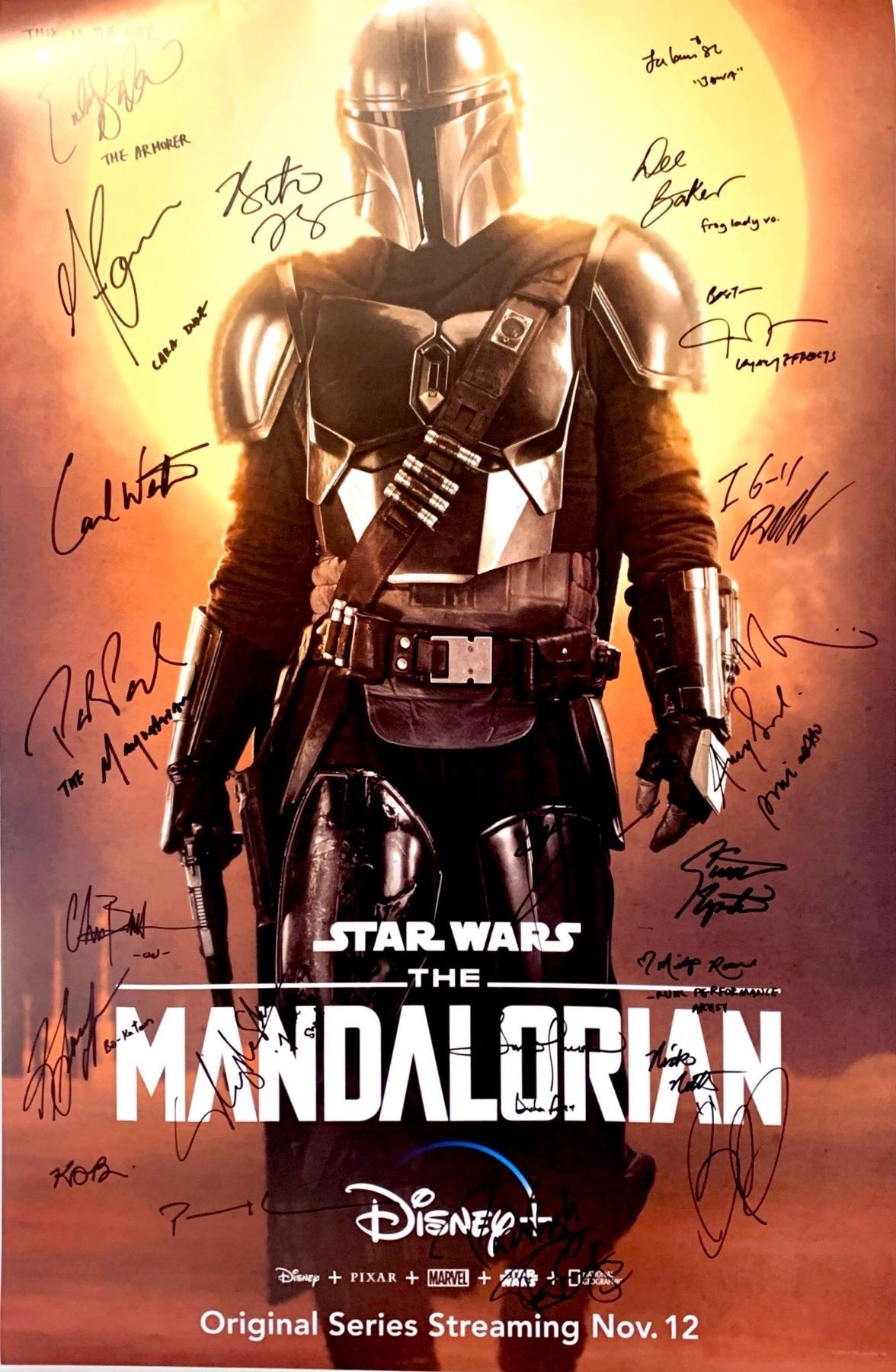 Autographed: Tait Fletcher, Emily Swallow, Katee Sackhoff, Temuera Morrison, Paul Sun-Hyung Lee, Gina Carano, Katy M. O'Brian, Ming-Na Wen, Dee Bradley Baker, Carl Weathers, Taika Waititi, Rio Hackford, Leilani Shiu, Sasha Banks, Misty Rosas, Nick Nolte, Bill Burr, Giancarlo Esposito, Horatio Sanz, Amy Sedaris, Chris Bartlett, Pedro Pascal