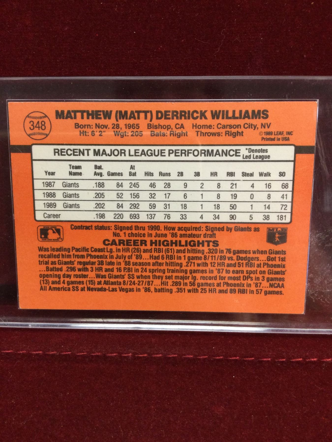You are bidding on a genuine autographed Matt Williams baseball card.