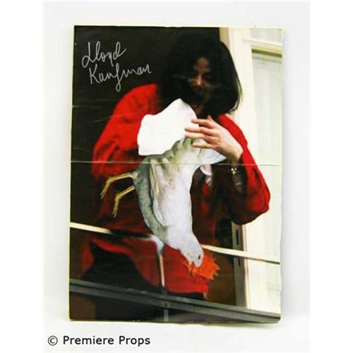 Autographed Michael Jackson dangling a chicken over a balcony poster - Signed by Lloyd Kaufman/ 2 pieces stuck on to a piece of foamboard (Measures 10" x 14") (TRO2009)