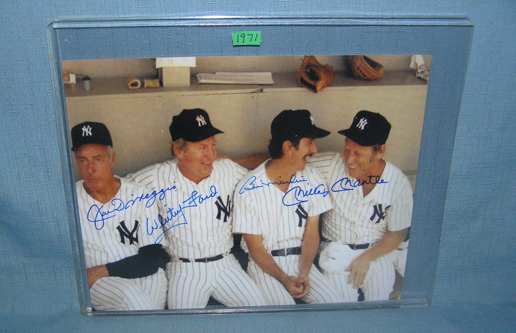 Autographed Mickey Mantle, Joe Dimaggio, Whtey Ford, and Billy Martin 8 by 10 photo
