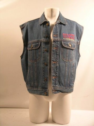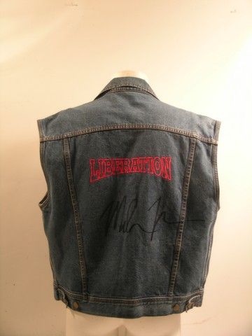 Mike Tyson autographed denim vest, commemorating his fight with Bruce Seldon in 1996, which Tyson won in the first round. Double breasted with two front pockets, and metallic buttons. On the front, the words: "Liberation: Champion Vs. Champion. Seldon Vs. Tyson. Sept. 7, 1996 MGM-Grand Garden Arena" are embroidered. On the back, the word, "Liberation" is embroidered in red, and Tyson's signature appears under it.