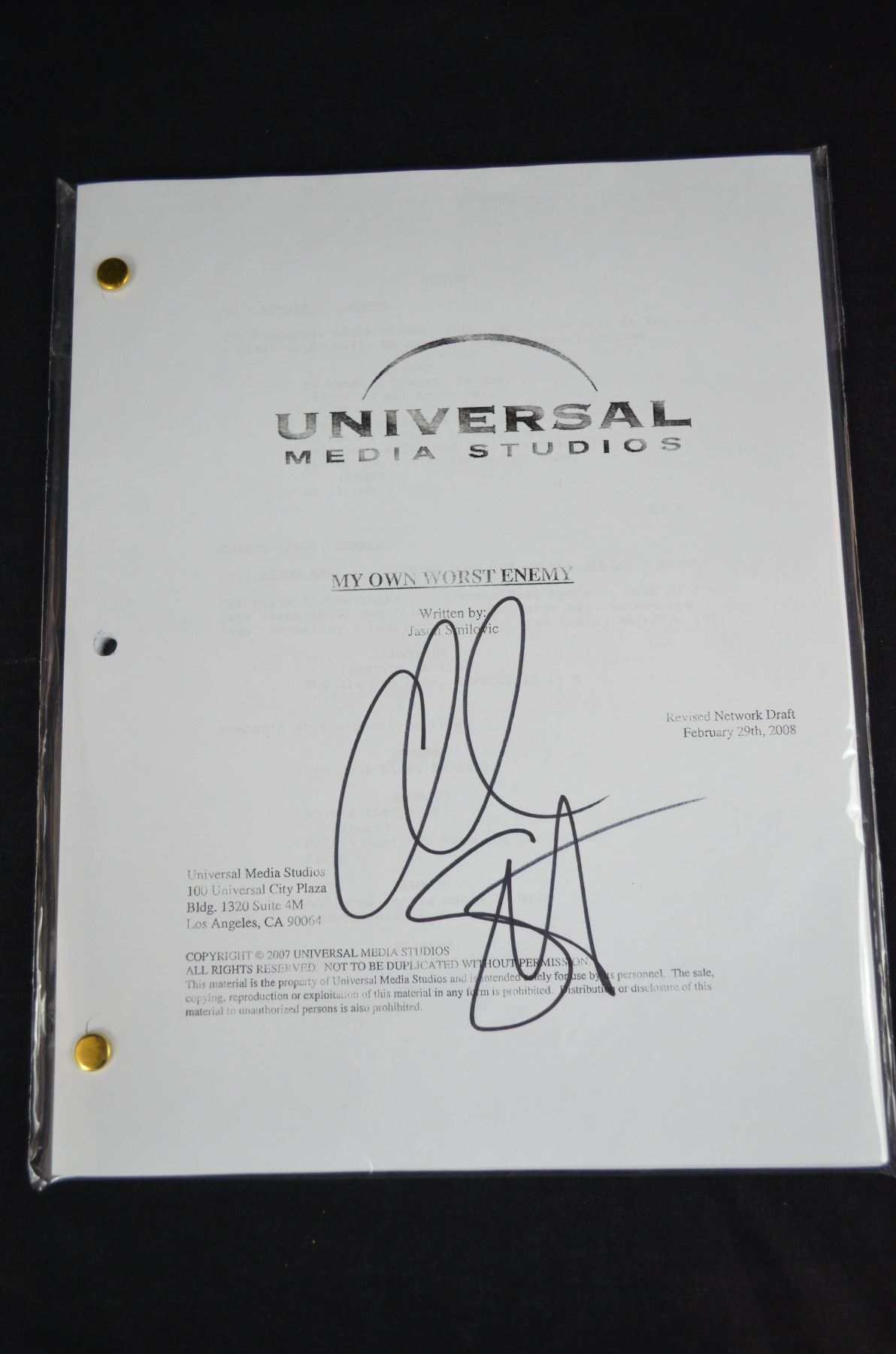 Autographed Movie Script "My Own Worst Enemy"