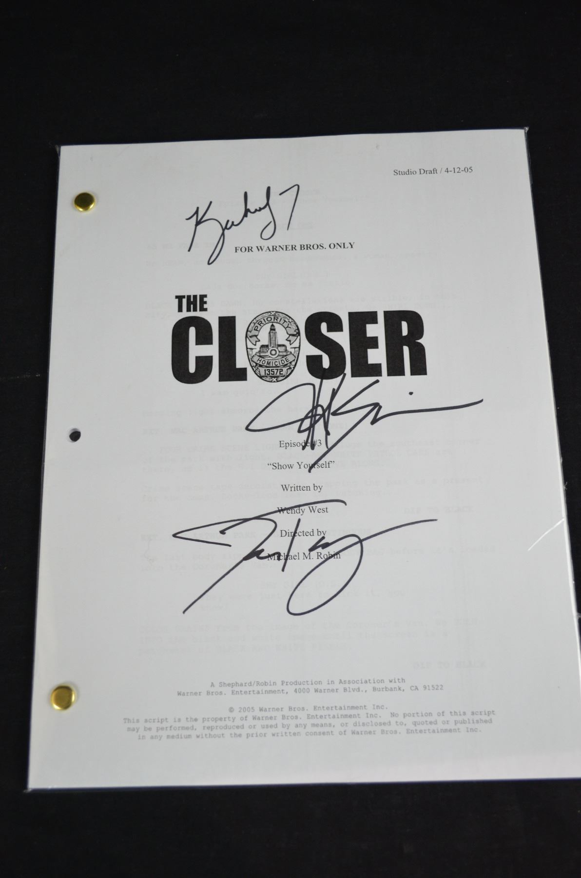 Autographed Movie Script  "The Closer"