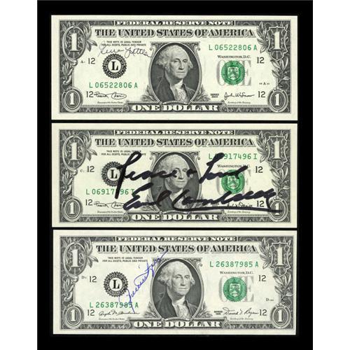 <B>Autographed Notes by Hall of Famers - Part I.</B></I><BR> These $1 FRNs are autographed by Hall of Famers Earl Campbell - Football, Rollie Fingers - Baseball, and Gene Littler - Golf. <B>Gem Crisp Uncirculated.</B></I><BR><BR><b>Shipping:</b> Coins & Currency (<a target="_blank" href="http://www.heritageauctions.com/common/shipping.php">view shipping information</a>)