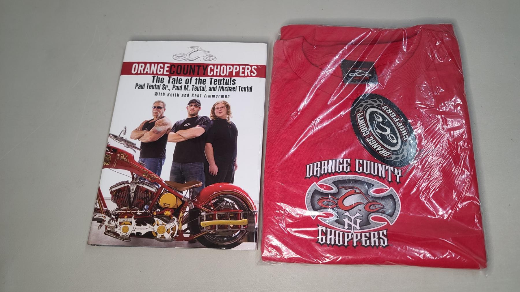 Autographed Paul Sr., Paul Jr. & Micheal Teutul Orange County Choppers: The Tale of the Teutuls Book & Sealed XXL Shirt