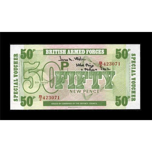 <B>Autographed Paper Money - James D. Watson.</B></I><BR> This is an autographed 6th Series British Armed Forces Special Voucher by James D. Watson. He was a Nobel prize winner in medicine in 1962. <B>Gem Crisp Uncirculated.</B></I><BR><BR><b>Shipping:</b> Coins & Currency (<a target="_blank" href="http://www.heritageauctions.com/common/shipping.php">view shipping information</a>)