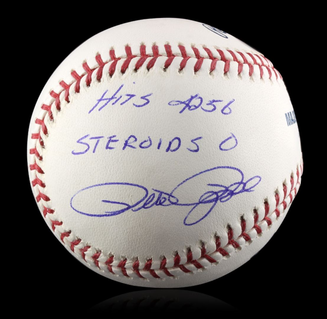 Autographed Pete Rose Baseball PSA Certified. Excellent Condition! DX153MA. Signed Pete Rose baseball with 4256 hits and 0 Steroids written on the ball. Pete Rose had "4256 hits in his 24 year career with the Reds, Phillies, and the Expos. Pete won 3 World Series Titles. He won in 1975 and 1976 with the Cincinnati Reds and he won his third in 1980 with the Philadelphia Phillies. PSA Certified.