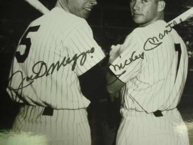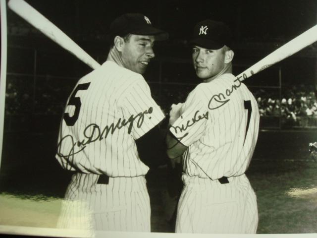 Autographed Photo DiMAGGIO & MANTLE: Unverified Autographed Photo of Yankee Greats Joe Di DiMaggio and Mickey Mantle. Black and White 8 x 10 Photo. (50-100)