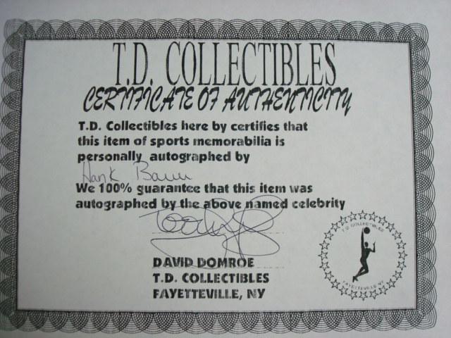Autographed Photo HANK BAUER with CA: 8 X 10 Color Photo Autographed by Hank Bauer in New York Yankee Uniform with Certificate of Authenticity from TD Collectibles Fayetteville NY. (30-60)