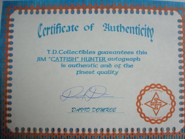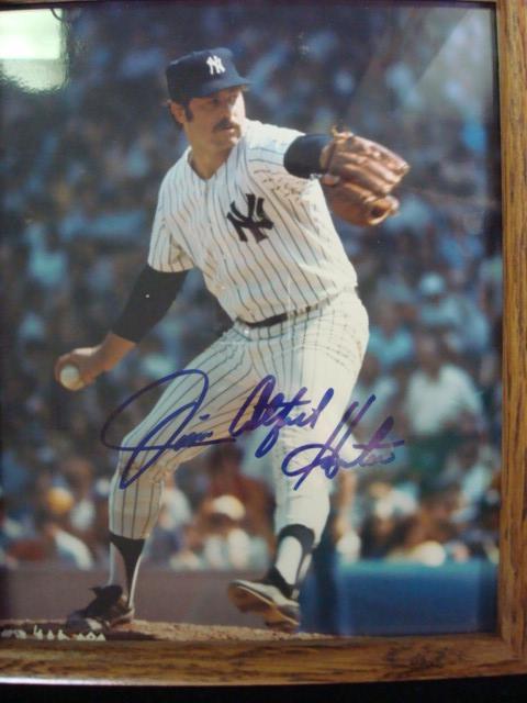 Autographed Photo JIM CATFISH HUNTER with CA: 8 x 10 Color Photo of Yankee Great Jim Catfish Hunter With Certificate of Authenticity from TD Collectibles, Fayetteville NY. (50-100)