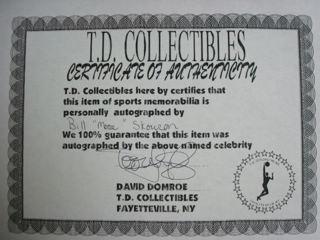 Autographed Photo MOOSE SKOWRON with CA: 8 x 10 Color Photo of Yankee Great Bill Moose Skowron With Certificate of Authenticity from TD Collectibles, Fayetteville NY. Signed "Best Wishes Moose Skowron. (25-50)