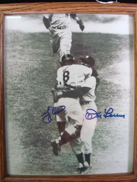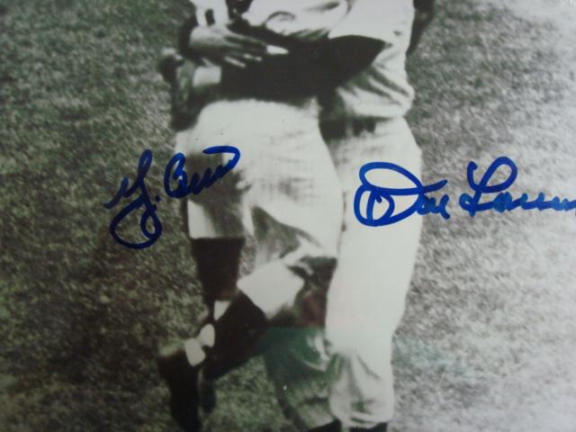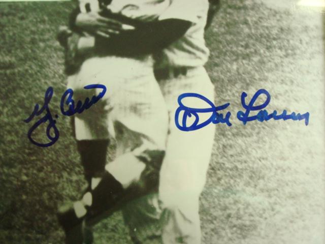 Autographed Photo YOGI BERRA & DON LARSON with CA: 8 X 10 Black & White Photo Autographed by Yogi Berra and Don Larson of the Famous Hug after the 1956 World Series Perfect Game. (200-300)