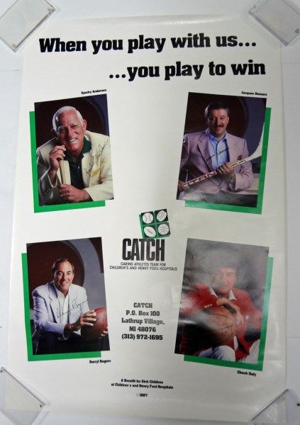 4 Autographs on a 36x24 CATCH (Caring Athletes Team for Childrens & Henry Ford Hospital) Poster, Excellent Condition, Includes Sparky Anderson, Jacques Demers, Darryl Rogers, Chuck Daly Autographs Est $175-$200