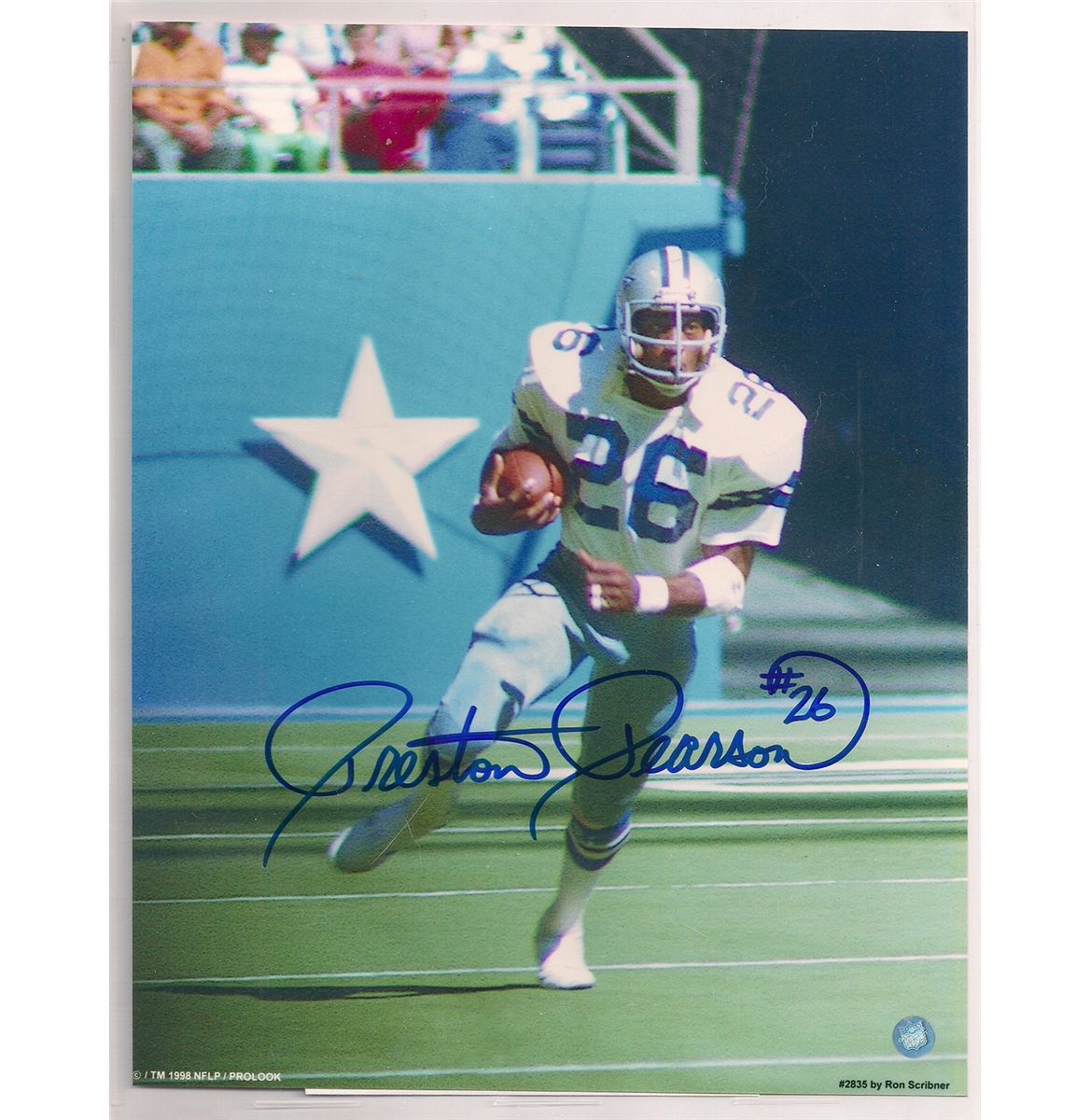 Autographed Preston Pearson 8x10 Color Photo. This photo is signed in Blue Ink, and comes with a Certificate of Authenticity. Both the autograph and photo are Near Mint.