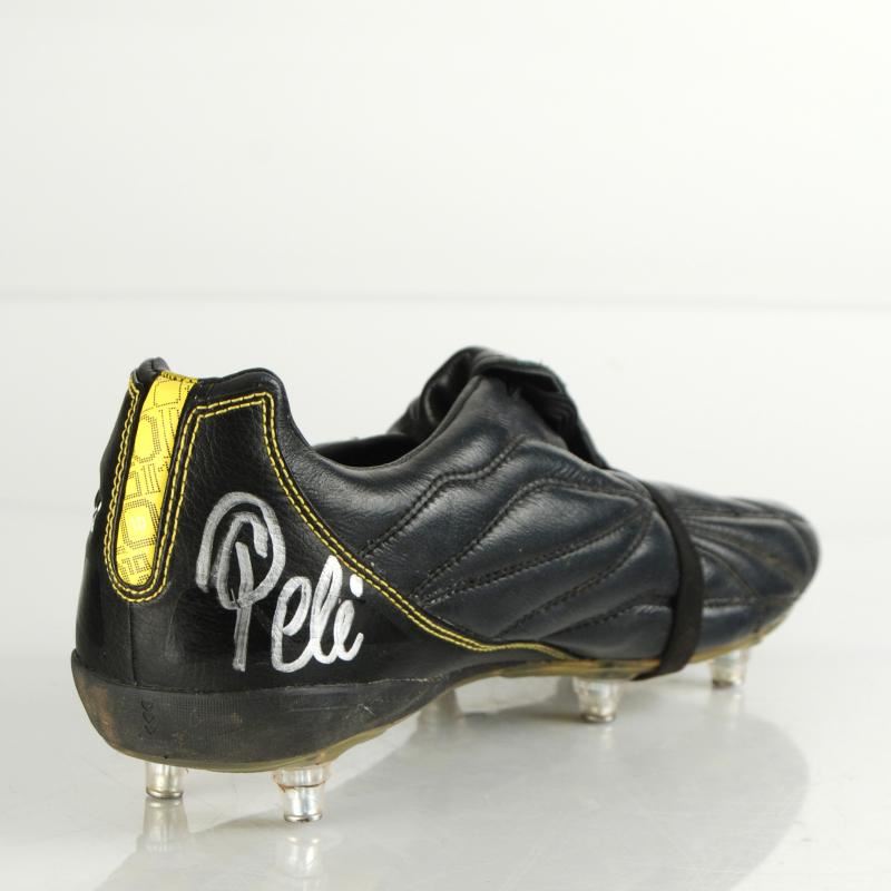 This is an autographed soccer cleat by legendary Brazilian footballer, Pele! This piece is presented with a Certificate of Authenticity from PSA/DNA, which authenticates sports memorabilia using proprietary permanent invisible ink as well as a strand of synthetic DNA. We make no additional warranties. Measures approx. 11" x 4" (cleat).