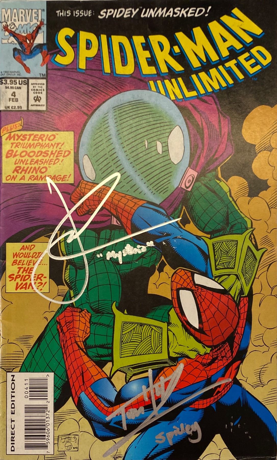 This issue: Spidey unmasked #4 Spiderman Unlimited Plus mysterio triumphant! Bloodshed Unleashed Rhino on a rampage! And wouldja believe the spidervan!, $3.95, 1983,