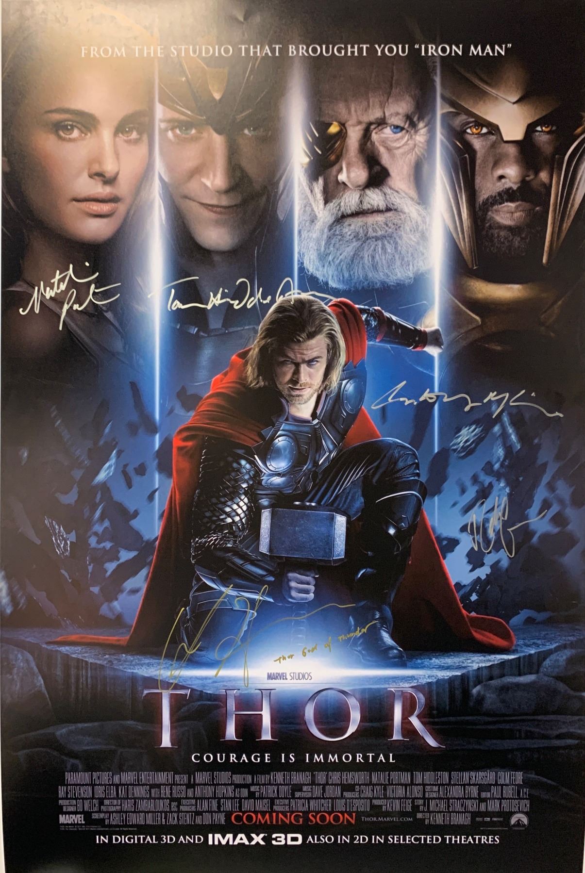 Autographed By: Chris Hemswoth, Natalie Portman, Tom Hiddleston, Anthony Hopkins, Idris Elba