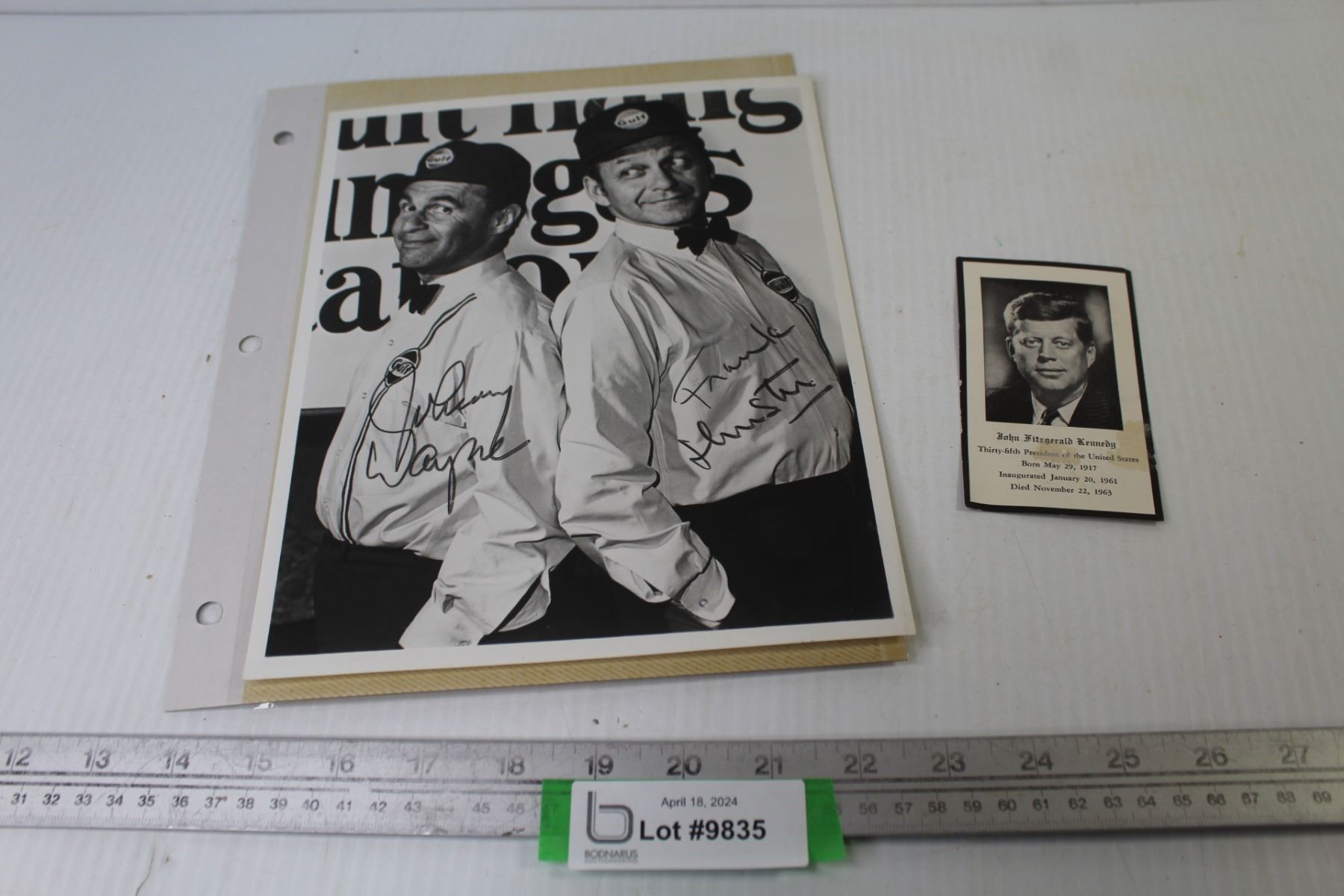 Autographed Wayne & Shuster Picture, J. F. Kennedy Card