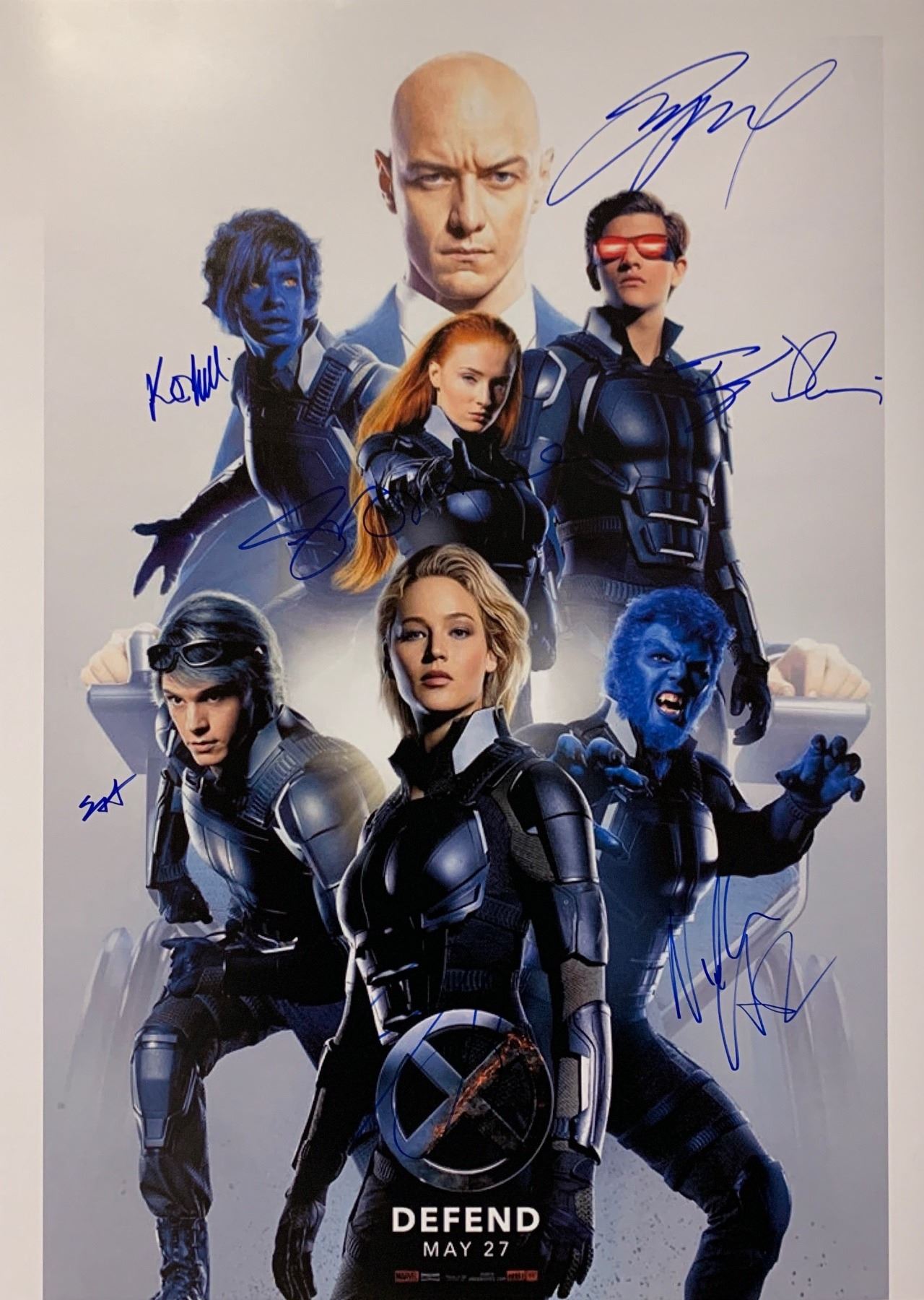 Autographed Includes: James McAvoy, Jennifer Lawrence, Nicholas Hoult, Tye Sheridan, Ben Hardy, Sophie Turner, Evan Peters, Kodi Smit-McPhee