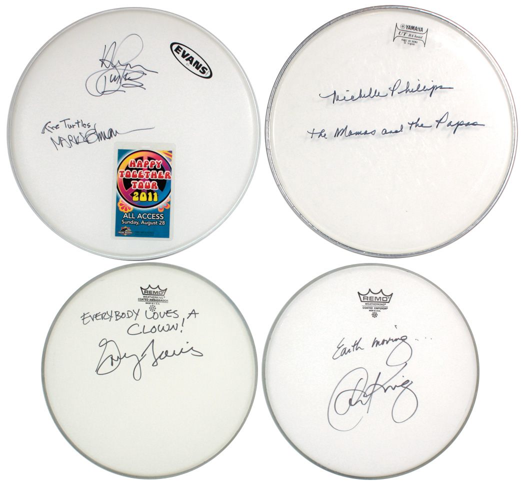 Autographed drum heads (4), Carol King, Gary Lewis, Michelle Phillips from Mamas & The Pappas & Mark