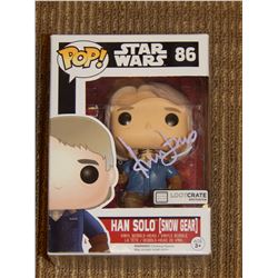 Special edition Lootcrate Han Solo Star Wars Pop Vinyl signed by Harrison Ford. The signature has been verified by Global Authentics and issued number