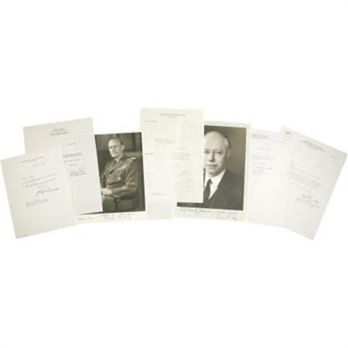 <B>Ten Autographs of 1950s Military and Political Figures,</B></I> as follows:<BR><B>William M. Brucker,</B></I> Secretary of the Army, signed card.<BR>Admiral <B>Arleigh Burke,</B></I> Navy Chief of Staff, signed card.<BR>General <B>Mark W. Clark,</B></I> Far East Command, signed card.<BR>Vice Admiral <B>A.W. Radford,</B></I> Deputy Chief of Naval Operations, signed card.<BR>General <B>Alfred M. Greunther,</B></I> NATO Commander, Signed Photograph.<BR><B>Robert B. Anderson,</B></I> Secretary of Defense, TLS and signed card.<BR><B>Harold Stasser,</B></I> University of Pennsylvania President, Assistant to Eisenhower, TLS.<BR>Senator <B>Robert H. Taft,</B></I> SP.<BR><B>Robert T. Stevens,</B></I> Secretary of the Army, signed card.<BR><B>Harold E. Talbot,</B></I> Secretary of the Air Force, TLS.<BR>All items very fine condition. <I>From the collection of Henry E. Luhrs.</B></I><BR><BR><b>Shipping:</b> Miscellaneous Collectibles, Smal (<a target="_blank" href="http://www.heritageauctions.com/common/shipping.php">view shipping information</a>)