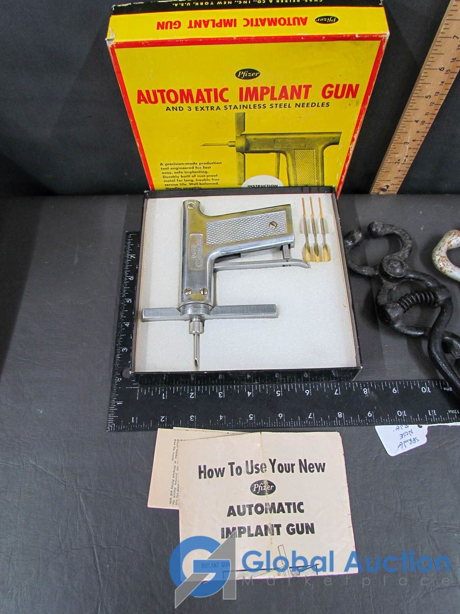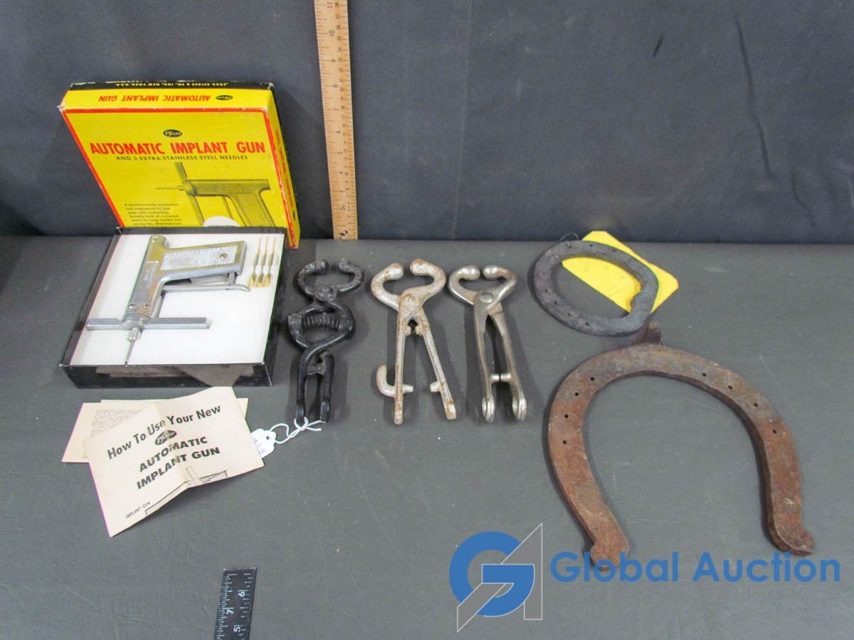 Automatic Implant Gun, (3) Spring Nose Bug and (2) Horse Shoes