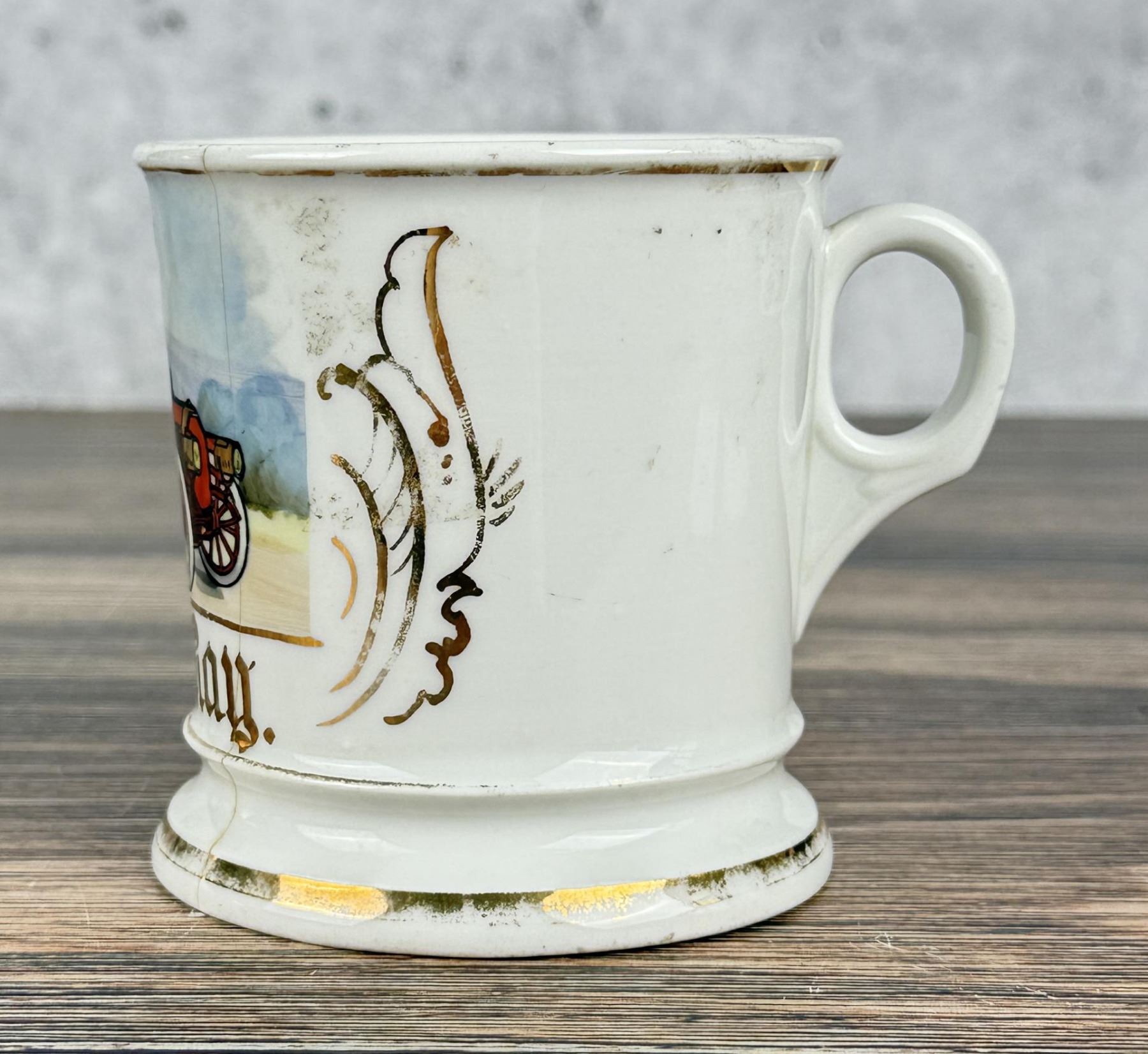Great example, hairline crack throughout mug. Named to M.C. Ray.