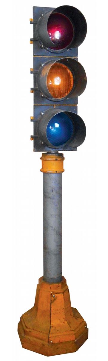 Automobilia, traffic light on 8-sided cast iron base, mfgd by Traffic Control Corp.-Chicago, Exc cond w/some orig paint wear, 76"H x 20"W.