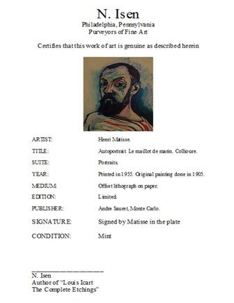 Offset lithopraph on paper by Henri Matisse. Original painting done in 1905. Signature is in plate.