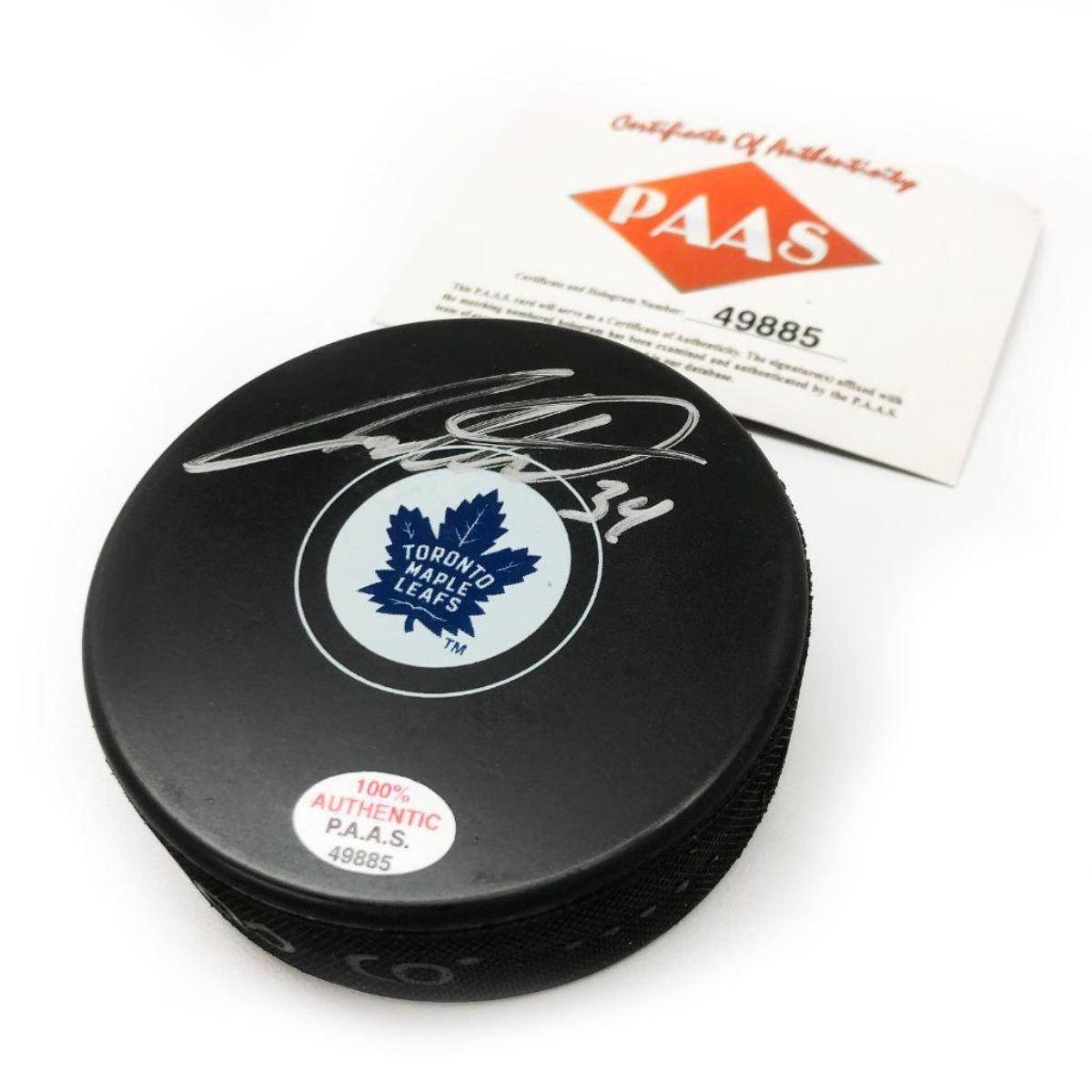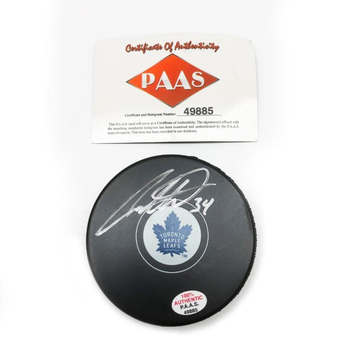 Autson Matthews Signed Toronto Maple Leaf Puck With COA. View Photos For Further Details.