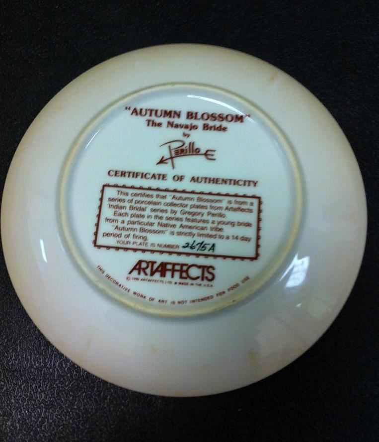 "Autumn Blossom" is from a series of porcelain collector plates from Artaffects 'Indian Bridal' series by Gregory Perillo. Plate number is 2675 A